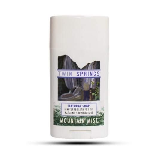Enjoy your next adventure with Twin Springs Mountain Mist Soap Stick! Handcrafted from scratch, Mountain Mist includes saponified oils of coconut and olive! The soap is crafted into the travel container using the cold process approach, preserving the beneficial properties of these organic oils making our soap gentle, soothing, and super soft!